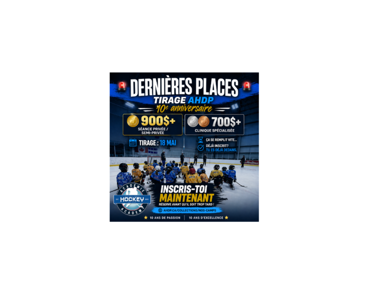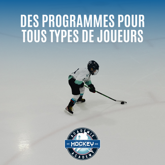 L’Académie offre une programmation variée en passant par des cliniques de développement à l’année jusqu’à nos camps d’été en perfectionnement de hockey. Cliquez sur l’un des onglets dans le haut de la page afin d’en apprendre plus.